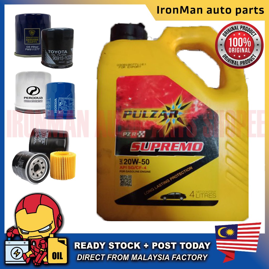 Pulzar Supremo Engine Oil Sae 20w50 Api Sg Cf 4 4l Minyak Hitam 20w 50 Combo Oil Filter Fuel Save Shopee Malaysia