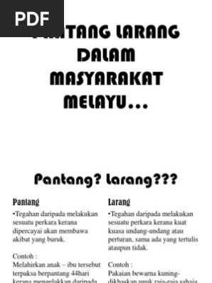 Pantang Larang Adat Resam Orang Melayu Pdf Document