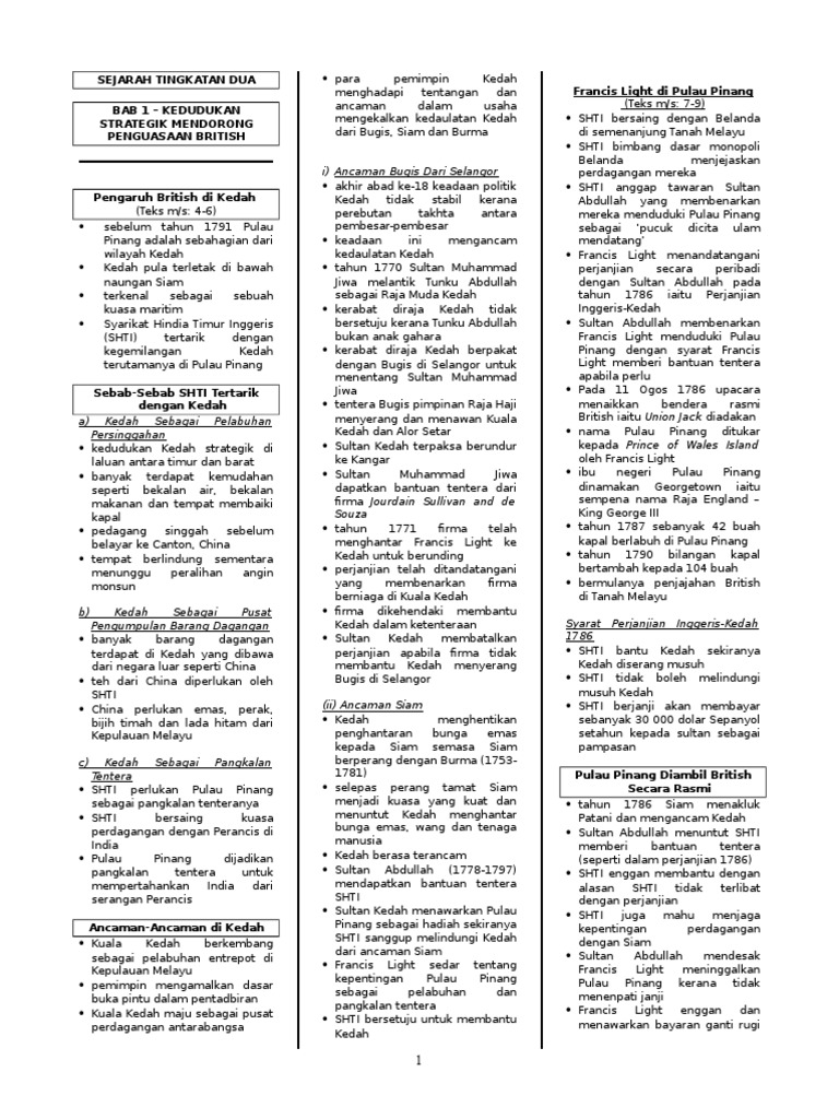 Sejarah Tingkatan Dua Akhir Abad Ke 18 Keadaan Politik Pengaruh British Di Kedah Teks M S Pdf Document