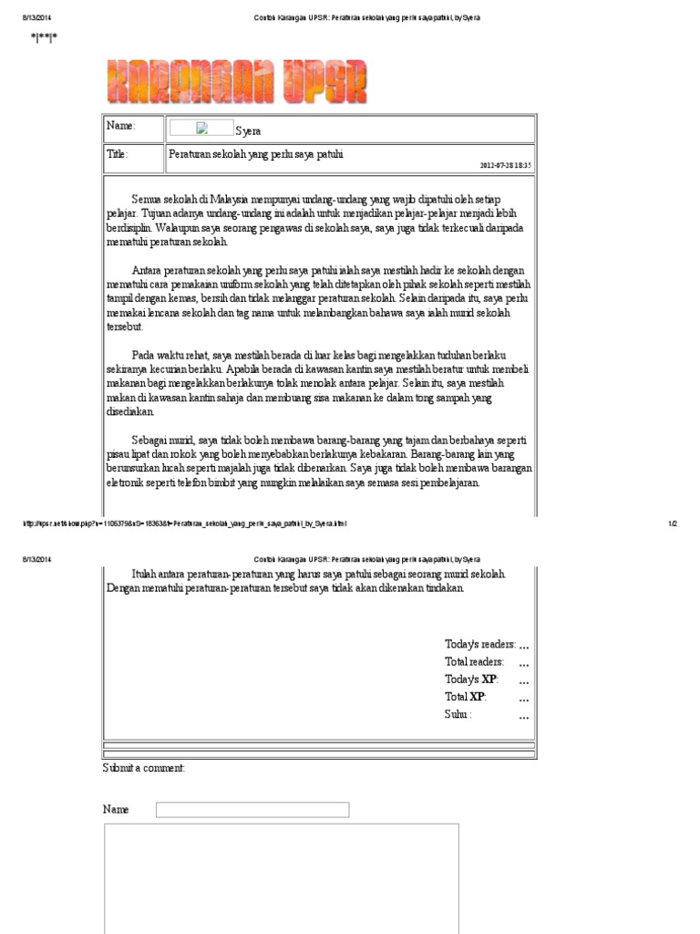 Contoh Karangan Bahagian A Kepentingan Peraturan Di Sekolah